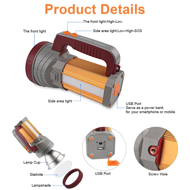 Buy LED Searchlight 15600mAh Outdoor Spotlight Flashlight Portable Handheld Camping Torch Long Shots La Right Here and Right Now, Because before price is changed you will just pay for US $23.69, not in Reguler Price at US $29.99. Yap! This is I mean you will Save 21%