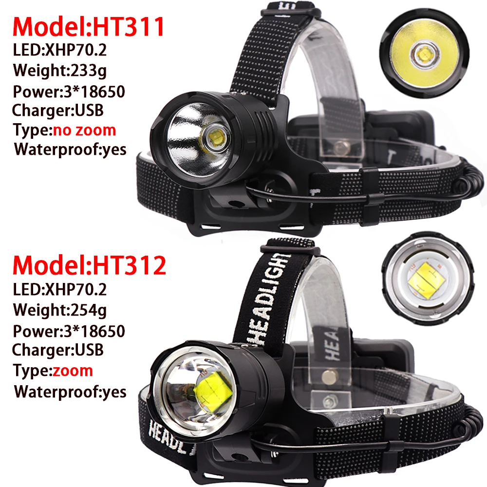 .image of XLAMP XHP70.2 most powerful led headlamp usb charge headlight waterproof use 3*18650 battery rechar
